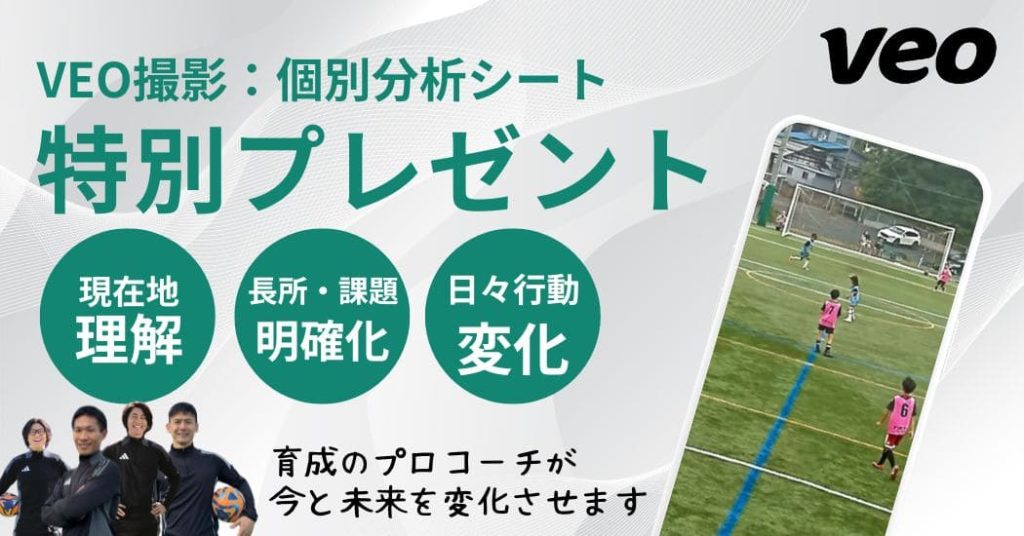 本キャンプの最大の特徴は、世界中のプロクラブが導入している最新のサッカー専用AIカメラ「VEO」によるプレー解析です。